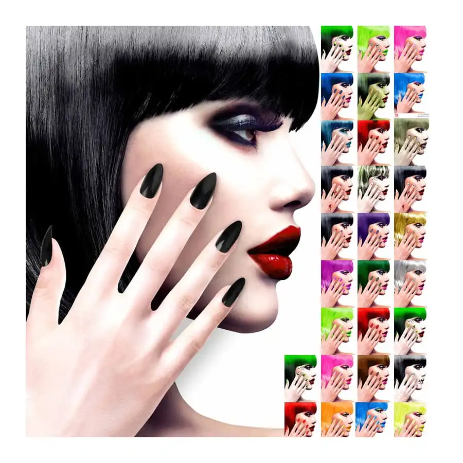 12 Faux Ongles Longs Pointus Adhesifs Femme