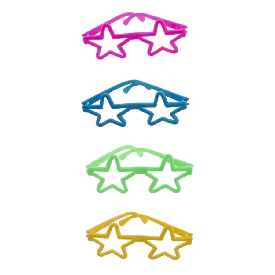 Les 4 mini lunettes étoiles colorées pour adulte sont en plastique.