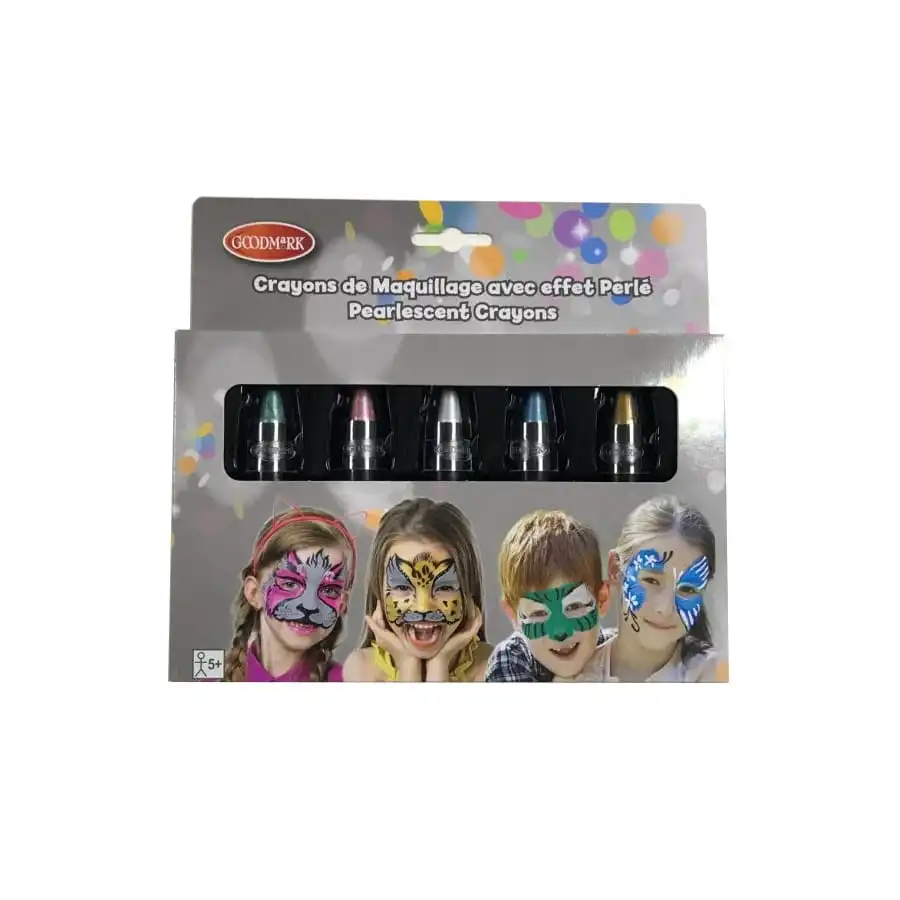 Donnez du champ à votre créativité à l’occasion du prochain carnaval, grâce aux 5 crayons maquillage effet brillant perlé de 2,8g.