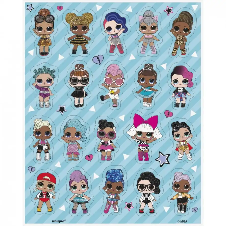 4 feuilles de stickers comprenant 80 sticks de poupées LOL Surprise au total.