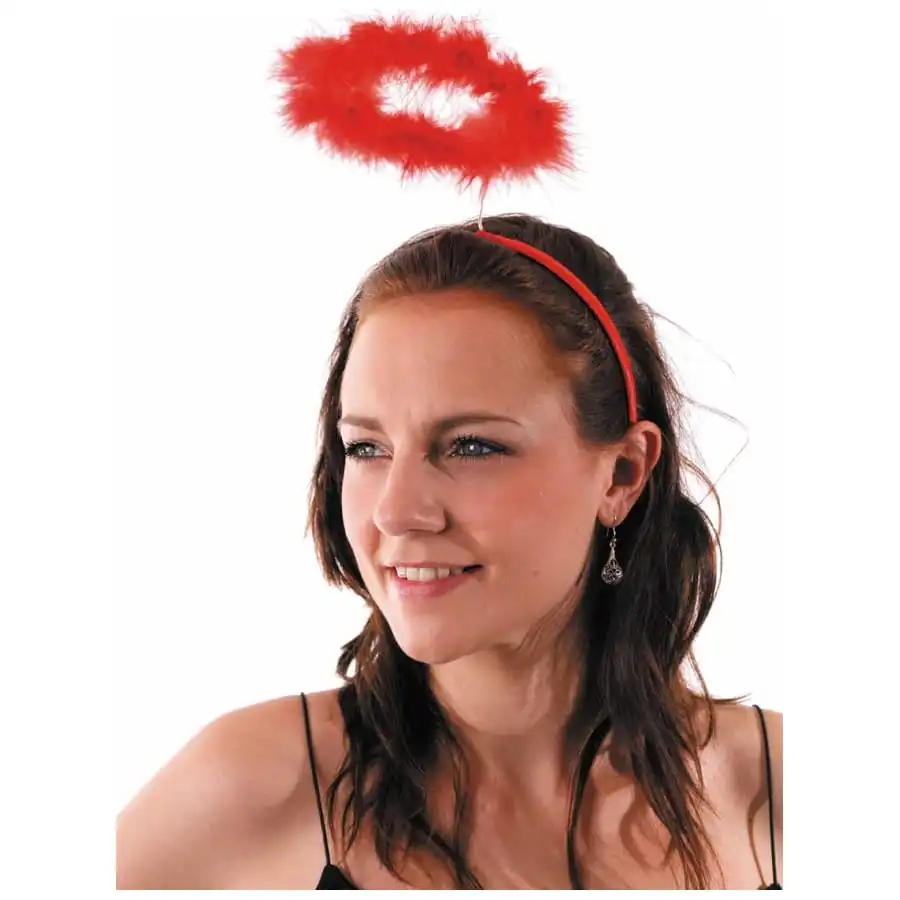Cette auréole est constituée de plumes synthétiques rouges parfait pour représenter un ange bienfaiteur ou un ange malfaiteur.
