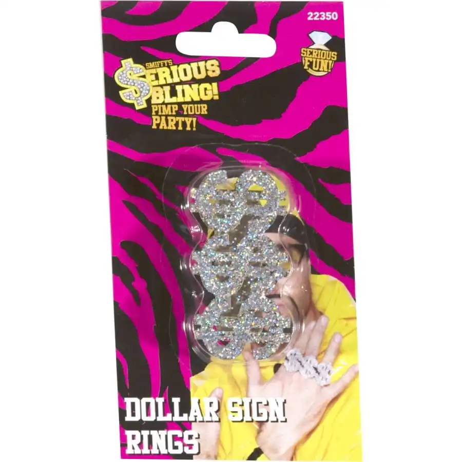 Bague bling bling en argent 3 en 1 Dollar. Idéal pour une soirée à thème et pour vous déguiser en rapper.