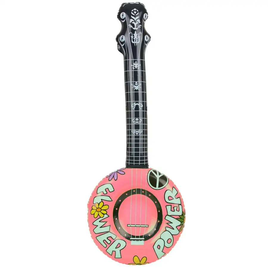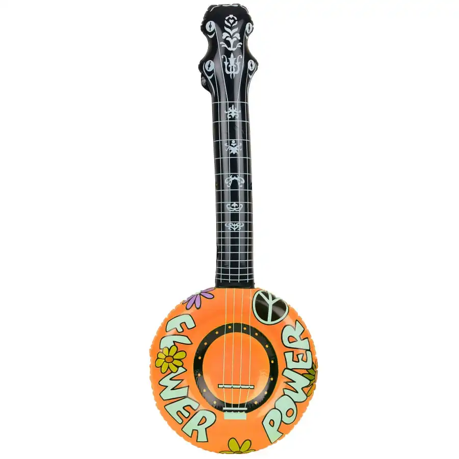 Le banjo est un instrument à cordes très célèbre. Il peut être très utile pour compléter un déguisement de hippie. Savoir en jouer ou pas ne sera pas un souci avec ce banjo gonflable. Il fait 110 cm de dimension et vous est proposé en orange, vert ou rose. De plus, il est agrémenté de l’inscription flower power ainsi que du symbole peace and love.