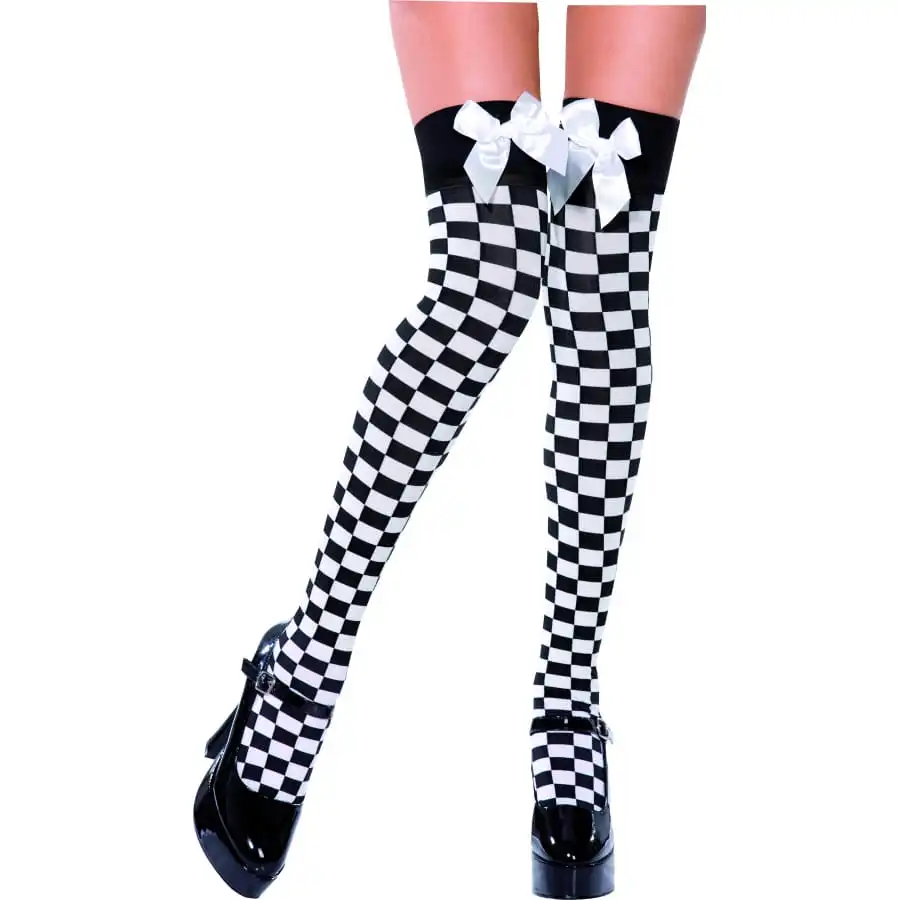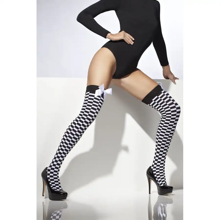 Ces bas en damier noir et blanc surmontés de grands noeuds blancs plairont aux séductrices. C’est un accessoire sexy qui vous ira très bien pour un carnaval comme pour une soirée en amoureux.