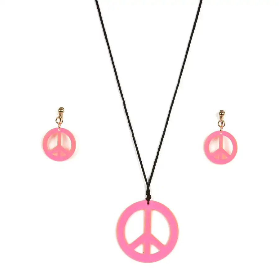 Boucles D’oreilles Et Collier Peace And Love Rose