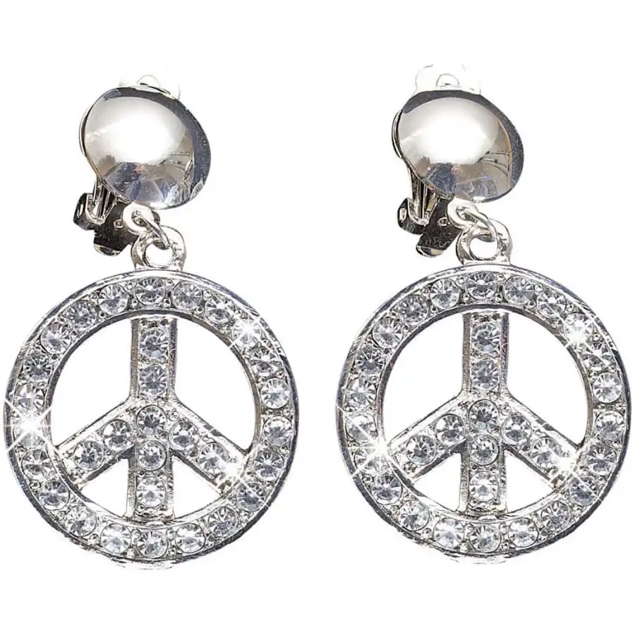 Vous pourrez accessoiriser votre costume de hippie avec ces boucles d’oreilles symbole peace and love strass pour adulte.