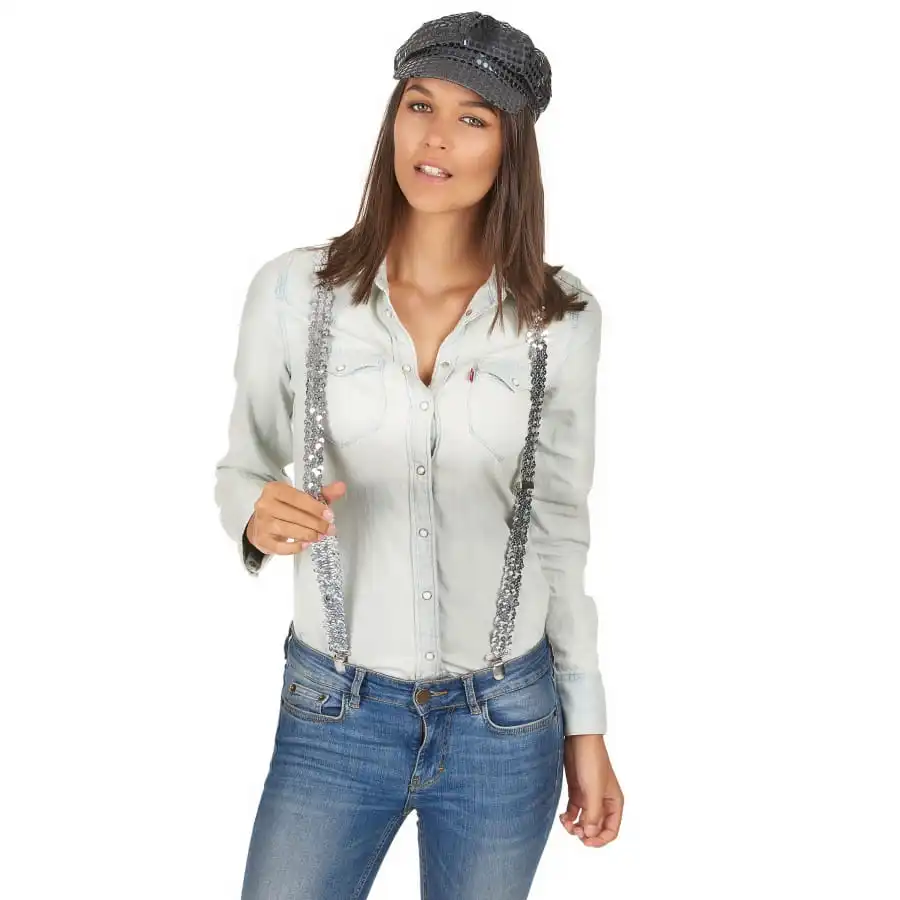 Complétez votre tenue de fête en y apportant une touche flashy tout en brillance, avec nos bretelles de sequins argentés.