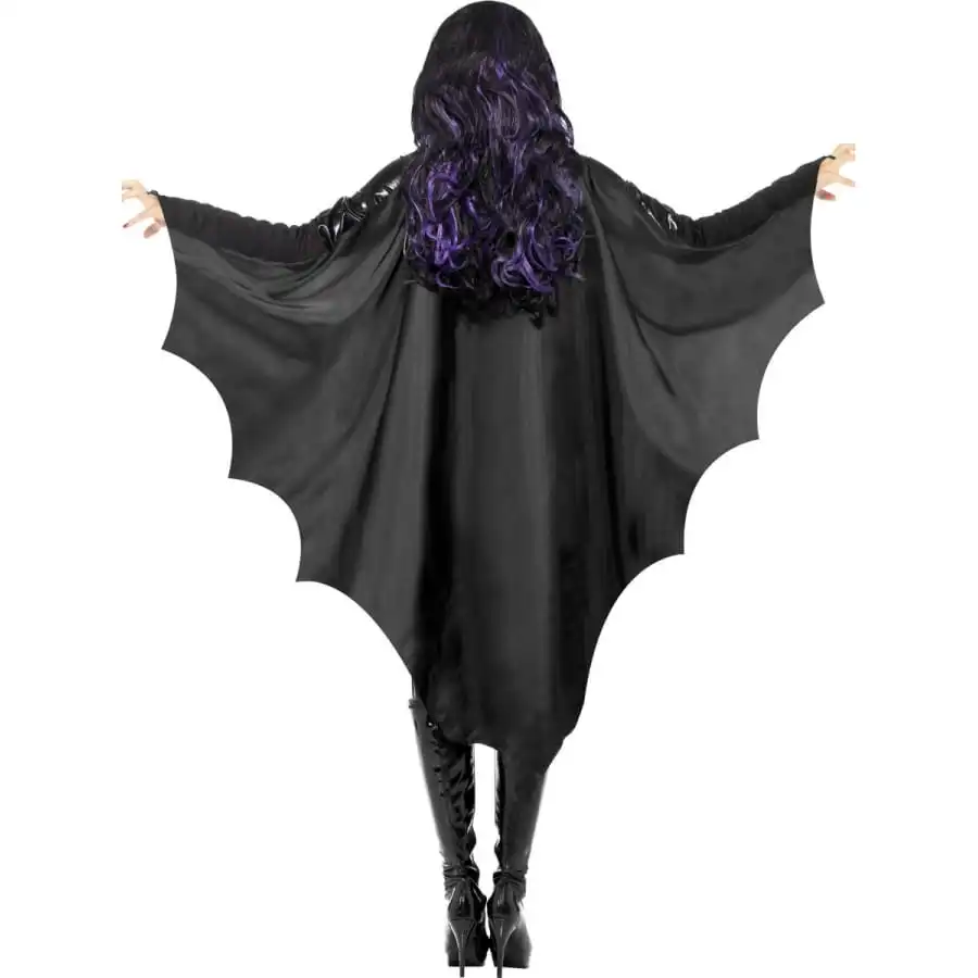 Magnifique cape de couleur noire, en forme d’ailes de chauve-souris, avec col intégré, pour femme. Avec cet accessoire, vous pouvez être sûre que votre déguisement ne passera pas inaperçu à l’occasion d’Halloween!
