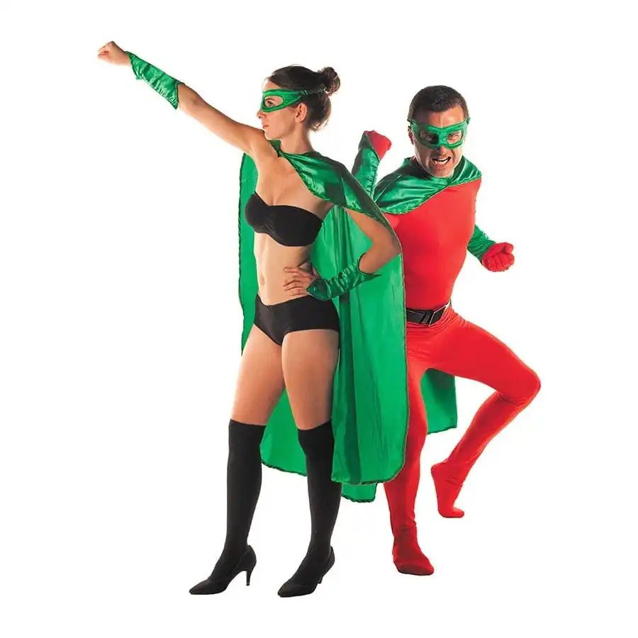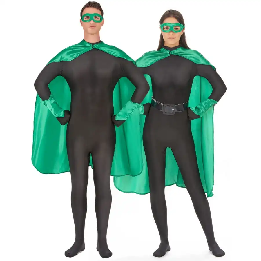 Avec les bons accessoires, il est facile de se métamorphoser en superhéros, la preuve avec ce kit comprenant une cape, masque et manchettes vertes pour homme.