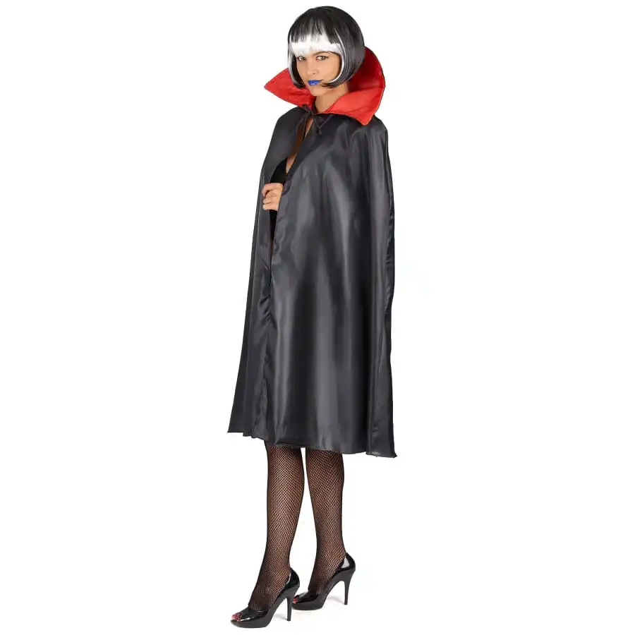 A vous le premier prix du déguisement de vampire grâce à cette cape noire avec col rouge pour adulte.
