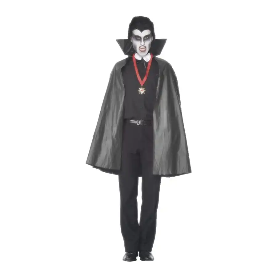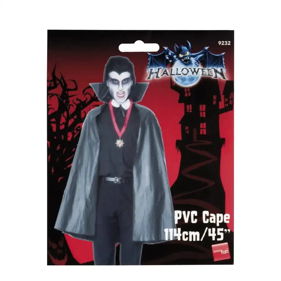 Cape de vampire en PVC de couleur noire avec col Ă revers, pour homme. La cape mesure 114 centimĂštres de long et sera plus qu’appropriĂ©e pour jouer le rĂŽle d’un vampire Ă l’occasion d’Halloween.