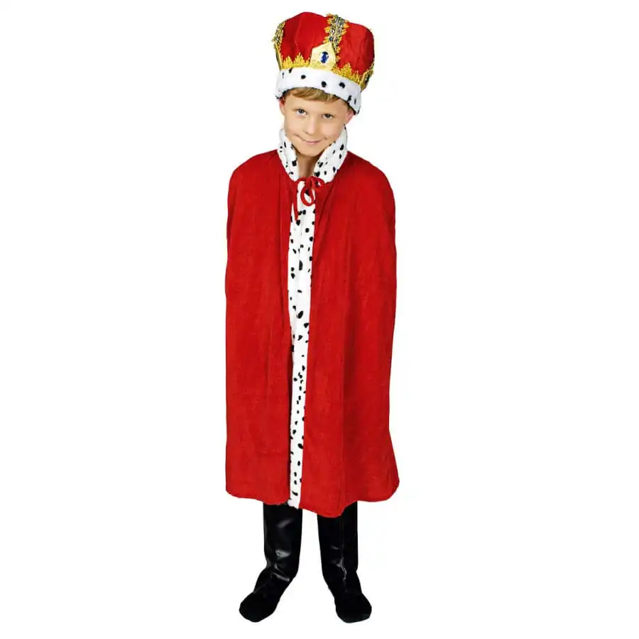 Laissez votre enfant faire une entrée remarquée avec la cape rouge de roi avec liseré blanc pour enfant.