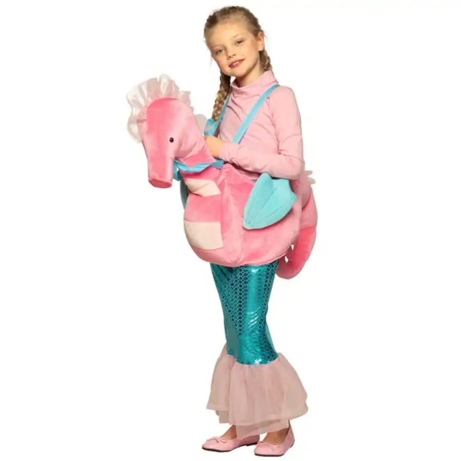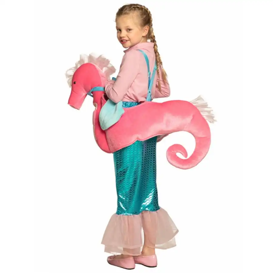 Le costume carry me de sirène à dos d’hippocampe est destiné aux filles.
