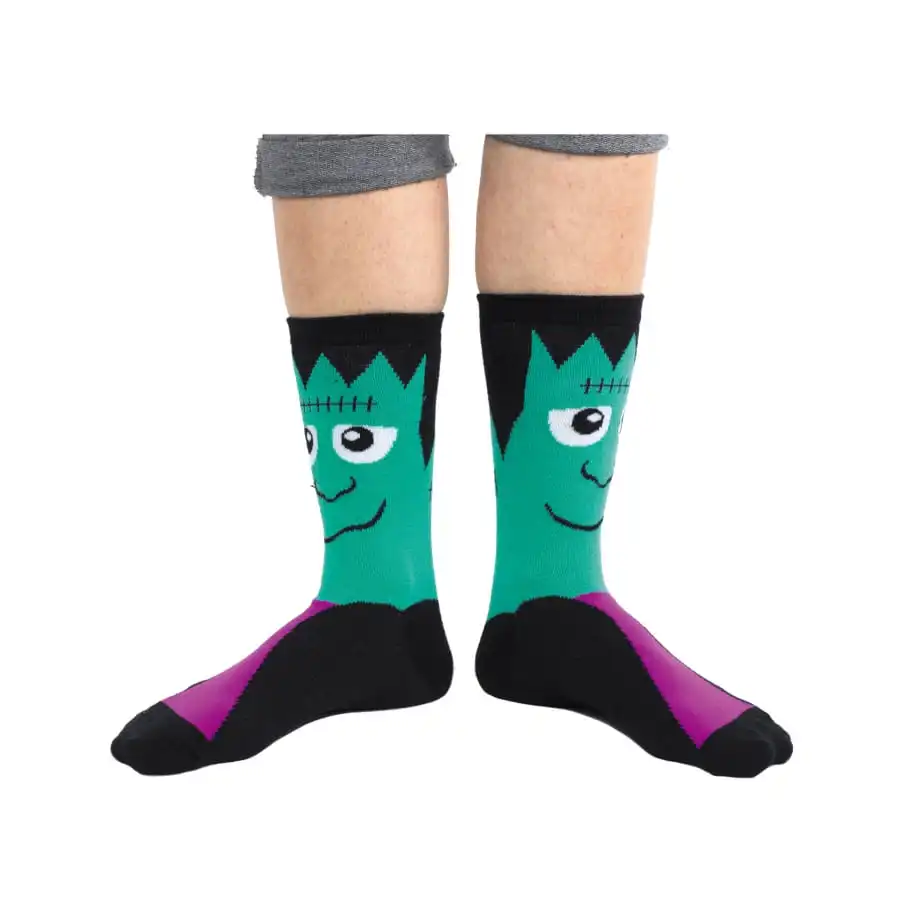 Offrez-vous les chaussettes Frankestein et peaufinez les derniers détails de votre costume d’Halloween.