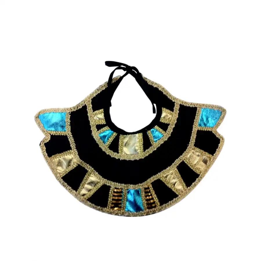 Ajoutez ce col égyptien brodé noir et doré à votre tenue pour être dans le thème de la mythologie du pays du grand Nil.