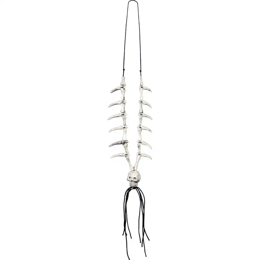 Que vous soyez un pirate ou un aventurier, nous vous proposons le collier de dents avec tête de mort pour parfaire votre déguisement pendant la nuit des morts.