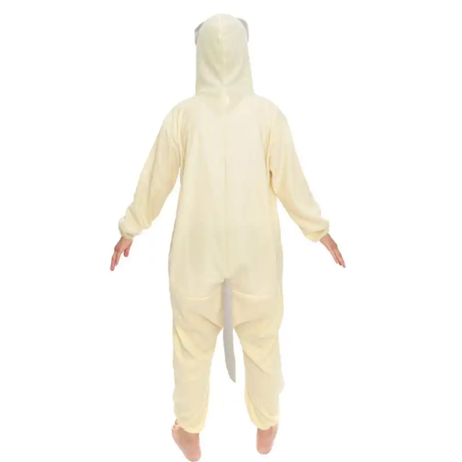 La zone blanche sur le devant marque le ventre du félin et dissimule une fermeture éclair qui aide à enfiler la tenue.