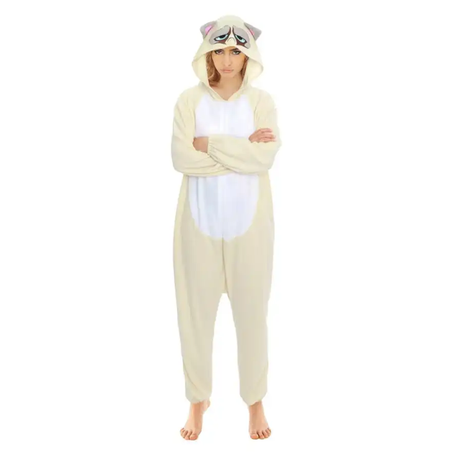 Incarnez la célèbre chatte boudeuse qui a longtemps ravit tous les internautes, grâce à la combinaison de Grumpy cat pour adulte.