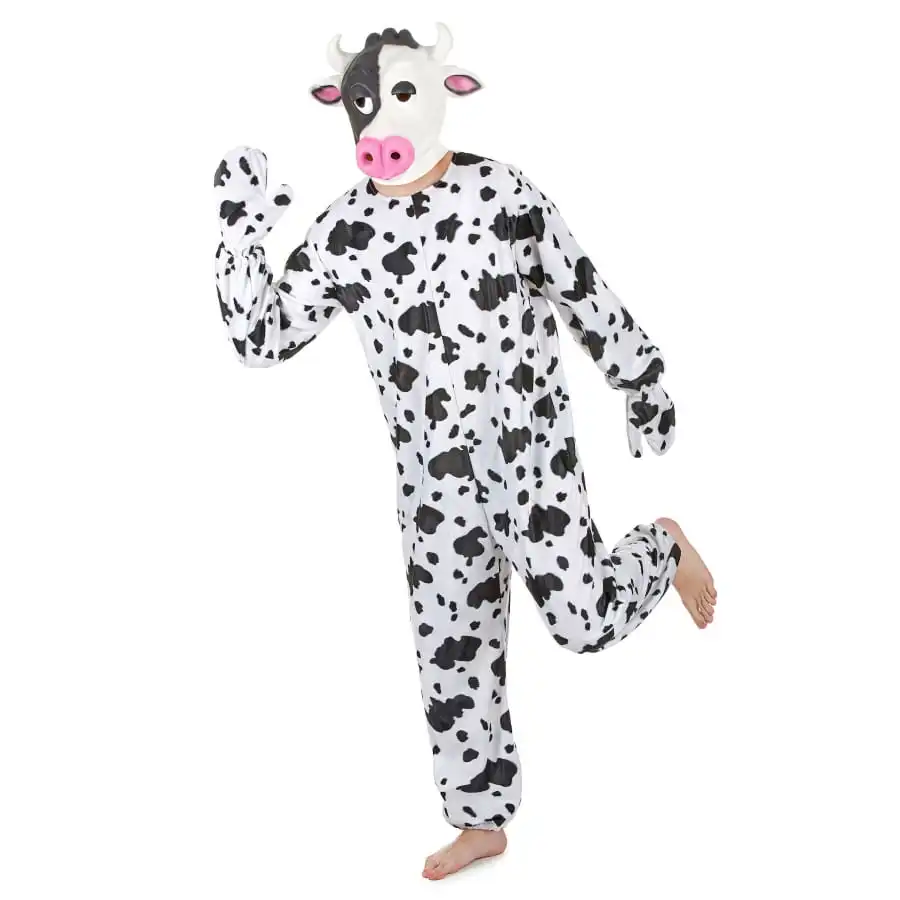 La combinaison douce au toucher est blanche avec des tâches noires qui rappellent le pelage d’une vache.