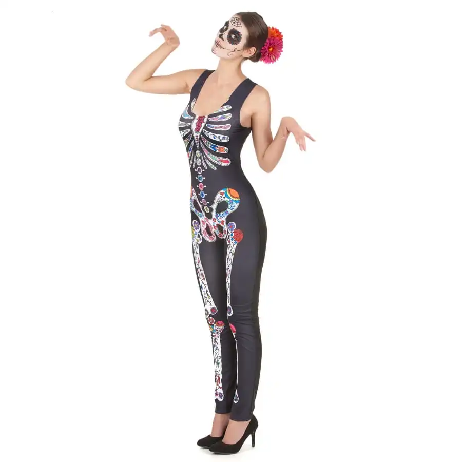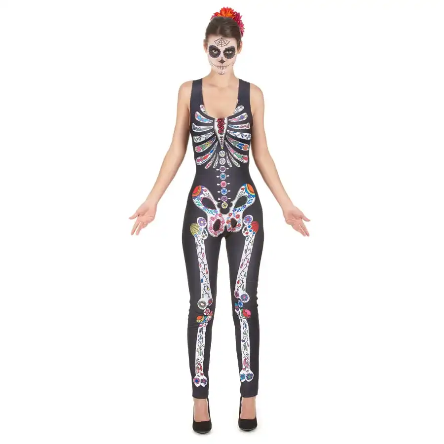 La combinaison Dia de los muertos sans manches est pour femme.