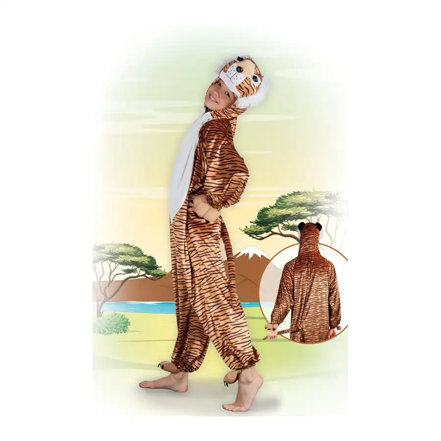 Chers parents, le grand évènement approche et vous ne savez plus quelle tenue vos enfants porteront ? Proposez leur cette combinaison marron tout en un, avec pieds, mains, tête et queue, en peluche, pour se déguiser en tigre. Elle conviendra à une fille ou un garçon d’une taille maximale de 140 cm. Votre enfant se sentira comme transporté au milieu de la jungle. La combinaison convient aussi pour incarner une mascotte, auquel cas toutes les têtes se tourneront vers votre bout d’chou !