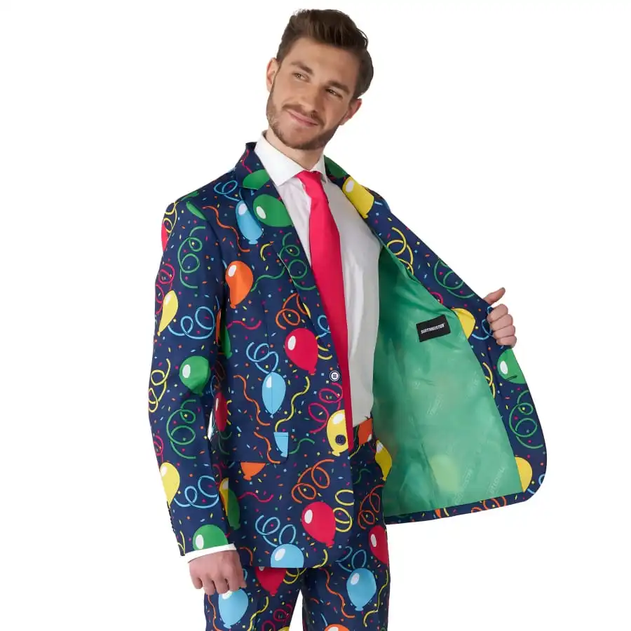 Préparez-vous à être le centre d’attention avec ce costume 3 pièces imprimé ballons et cotillons ! Que ce soit pour un anniversaire, un carnaval ou une soirée à thème, cette tenue signée Suitmeister saura vous distinguer de la foule et apporter une ambiance festive à chaque événement.