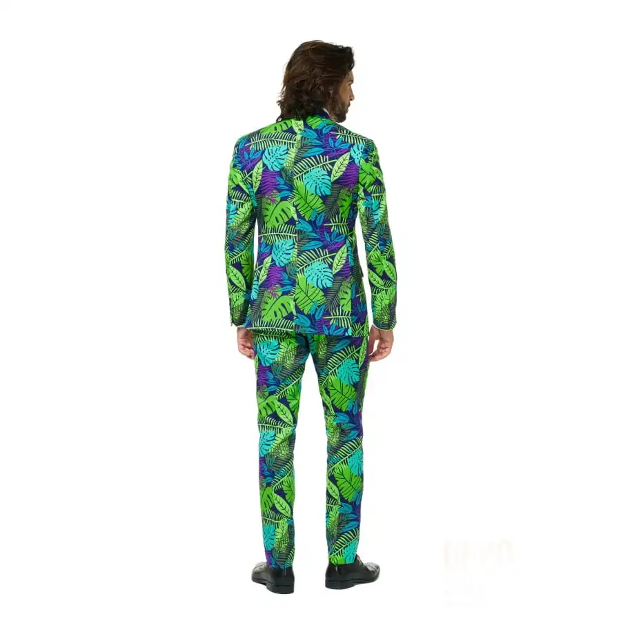 Ce Costume 3 pièces imprimé feuilles tropicales homme très chic et taillé sur mesure est fait dans un tissu de bonne qualité.