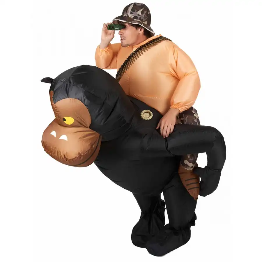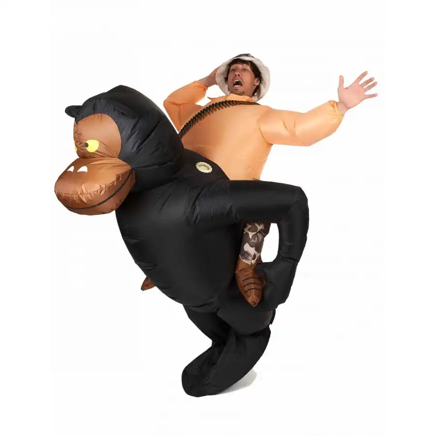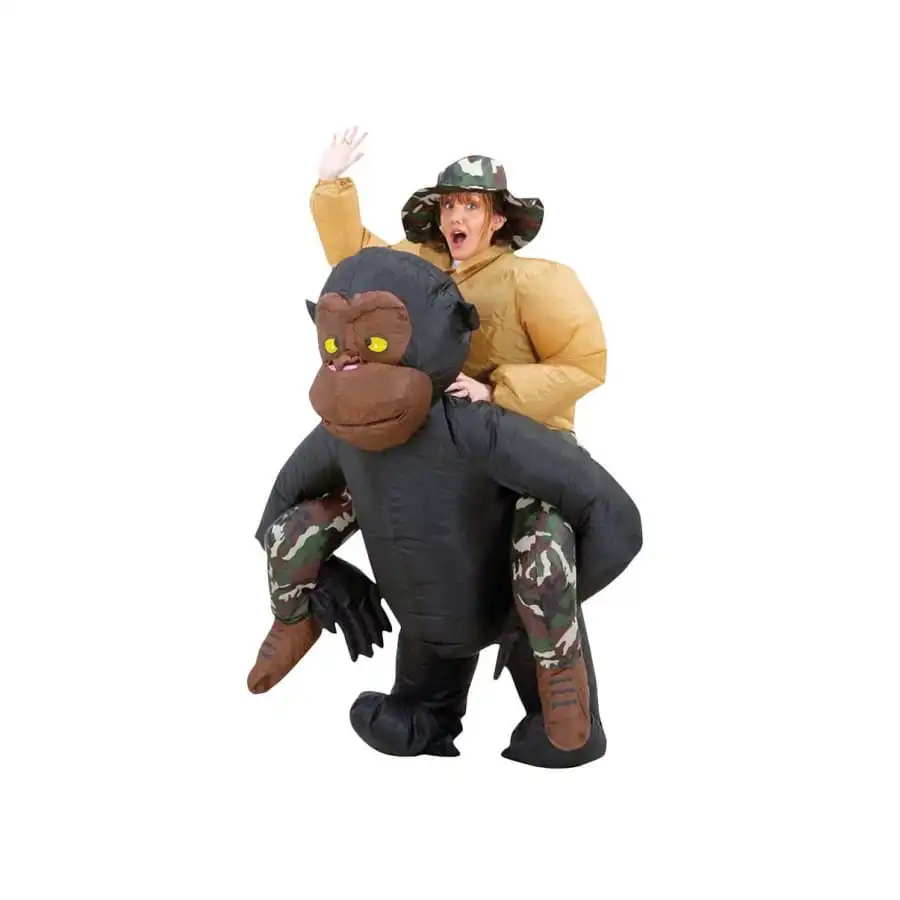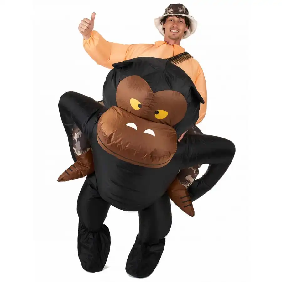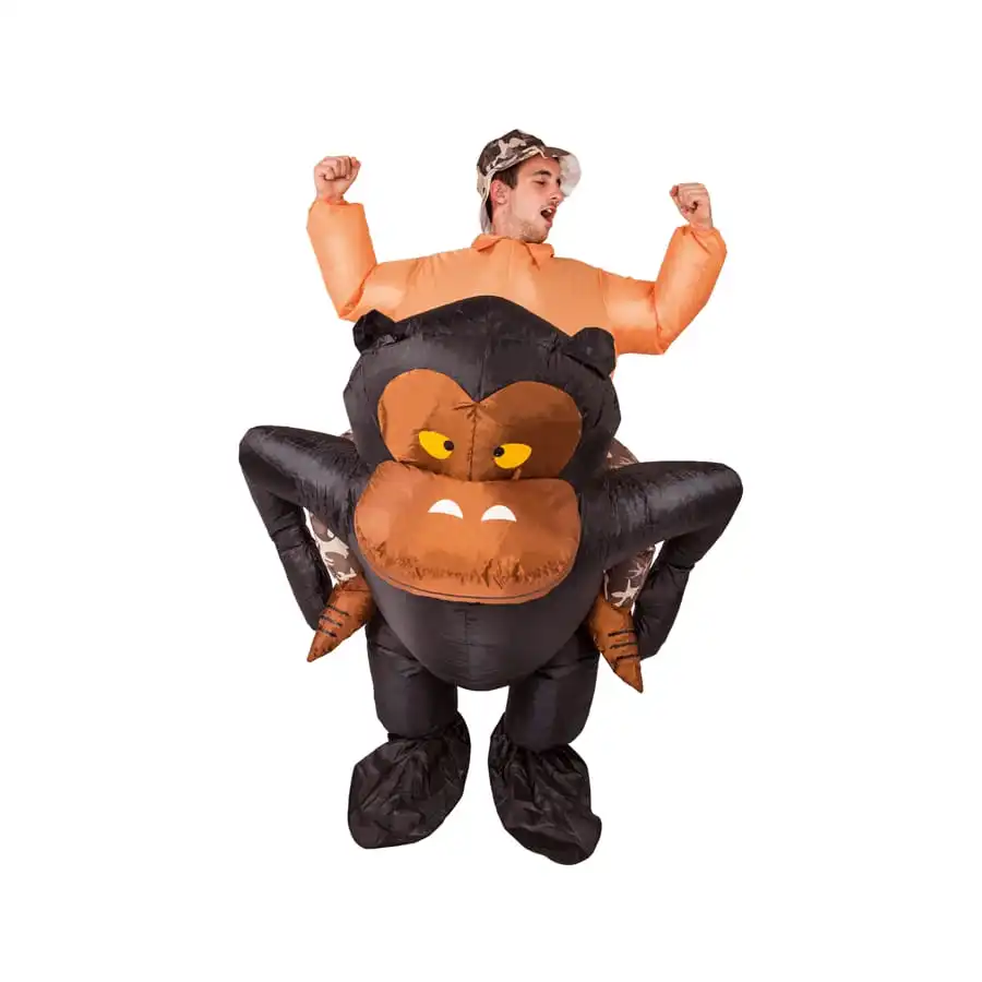 A la recherche d’un déguisement original pour un carnaval ou une fête déguisée ? Nous avons l’article qu’il vous faut. En effet, nous vous proposons le costume à dos de gorille, qui reste disponible sur notre site. C’est une combinaison entièrement fabriquée dans du PVC. De couleur marron et noire, ce costume gonflable convient aussi bien aux hommes qu’aux femmes. Il s’aliment grâce à un dispositif intégré dans l’ensemble et qui fonctionne à l’aide de 4 piles AA non fournies. Ce système fait circuler de l’air en permanence dans le costume. En l’enfilant, vous aurez l’air d’une personne qu’un grand gorille noir porte sur son dos !