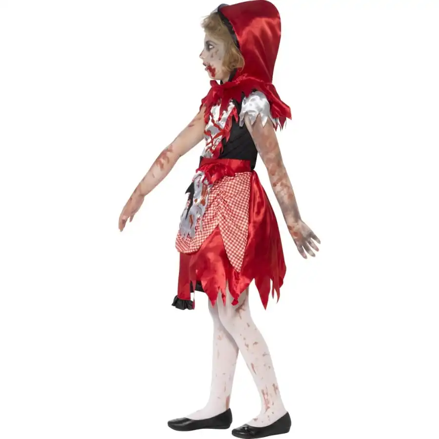 Ce costume Chaperon Rouge zombie si effrayant, sous licence Disney, que vous voyez là, est destiné aux petites filles, à mettre pour Halloween, le soir le plus terrifiant de l’année. Il ressemble tout à fait à la tenue du Chaperon Rouge, sauf que c’est en version zombie. Ce déguisement est composé d’une robe et d’une pèlerine, de couleur rouge, visuellement très usées, avec des fausses taches de sang un peu partout. N’hésitez pas à rajouter des taches de sang sur les mains, les pieds, et surtout sur le visage de votre petite fille, ainsi que du maquillage si nécessaire, tout ça pour faire plus réaliste.