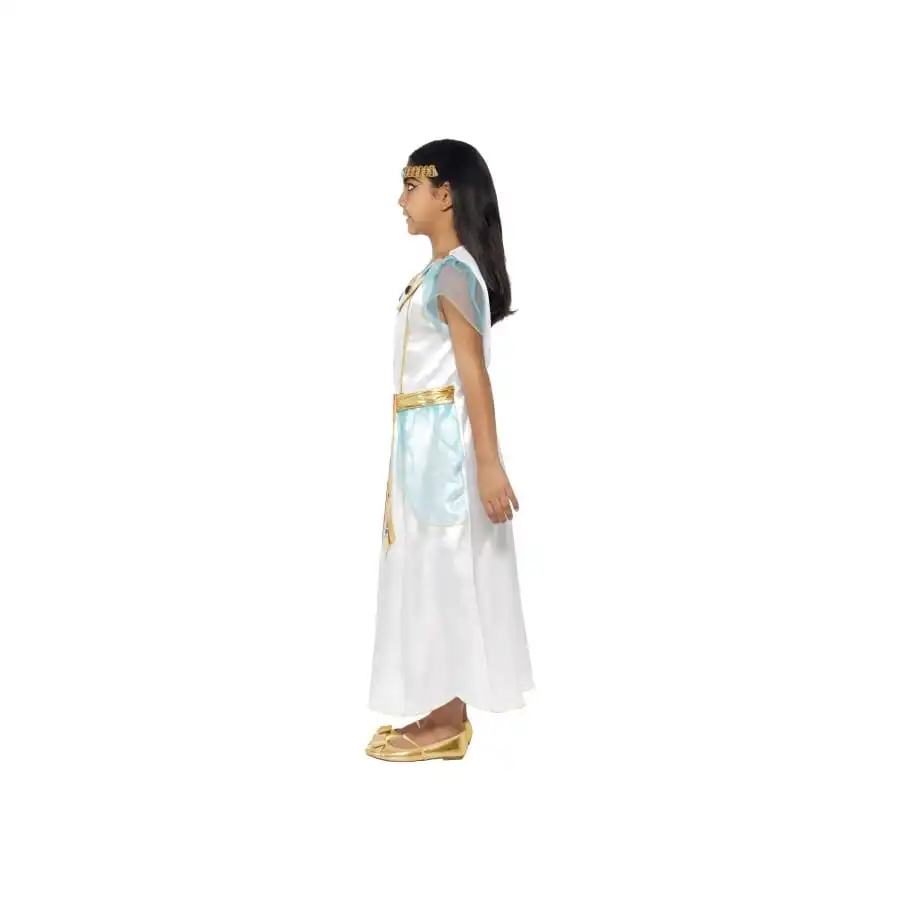 Sachez que votre petite fille pourra bien être transformée en une belle petite princesse égyptienne, à l’occasion d’une fête sur le thème “Égypte” ou “autour du monde” avec ce déguisement que nous vous proposons ici. C’est un costume de Cléopâtre contenant une longue robe blanche en satin, avec des ornements dorés au niveau du col et de la ceinture, et d’une coiffe en forme de bandeau d’orfèvrerie, souvent portée souvent par les reines d’Egypte. Les tailles disponibles sont 10/12 ans, 7/9 ans et 4/6 ans. Rien n’est plus beau que de porter un déguisement original et authentique, comme celui-ci. Un petit coup de maquillage et hop, voilà votre petite fille déguisée en belle princesse égyptienne.