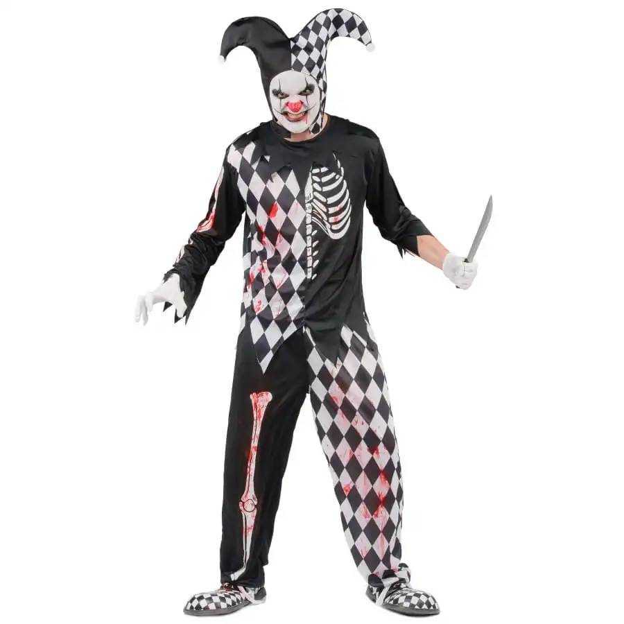 Le costume d’arlequin tueur pour homme est un ensemble bicolore composé de 3 pièces.