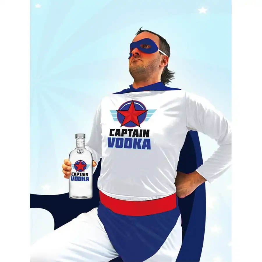 Alors revêtez fièrement le costume de Captain Vodka pour votre prochain enterrement de vie de garçon.