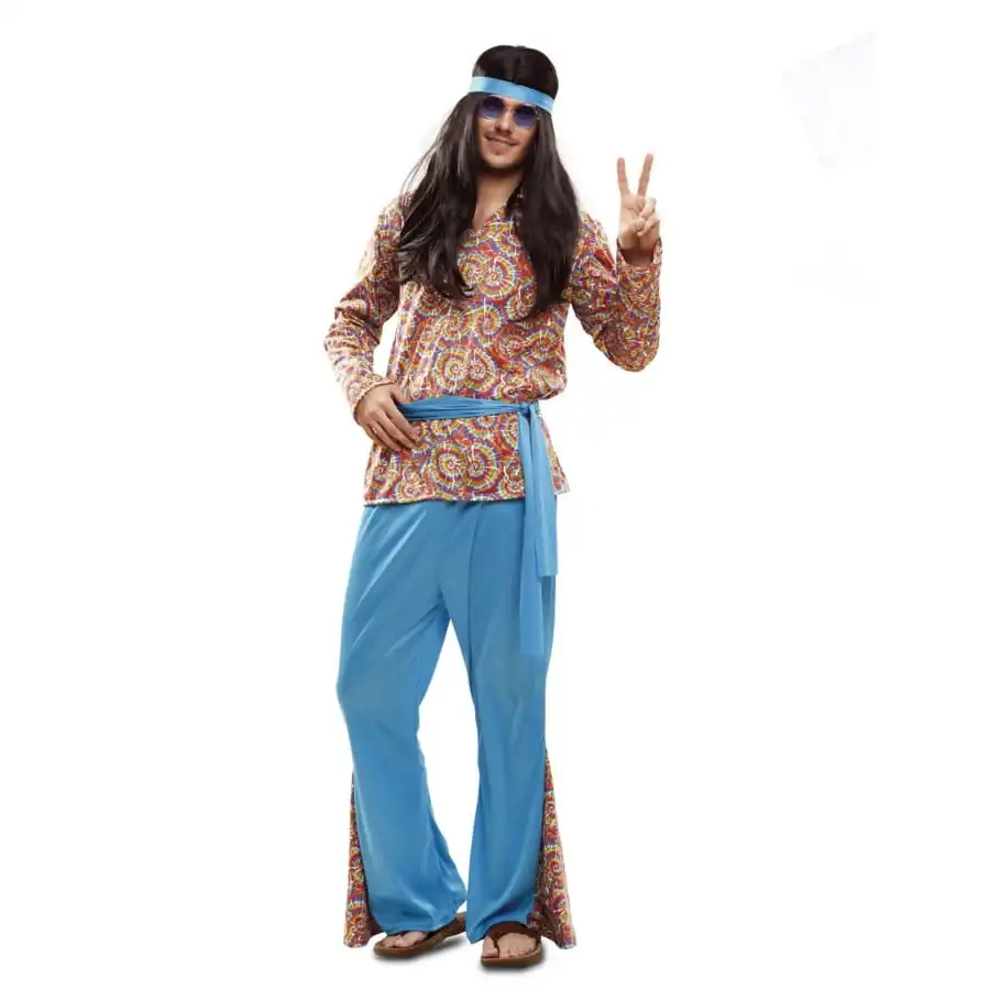 C’est parti pour une visite guidée des années rétro, grâce au costume de hippie bleu pour homme.
