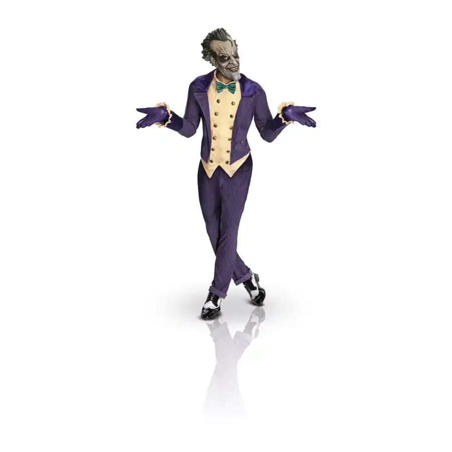 Nous connaissons tous Joker, un personnage semblable à nul autre, l’ennemi juré du fameux super héros Batman. Nous avons concocté ce costume de Joker version Arkham city, rien que pour vous, Messieurs, pour que vous puissiez entrer dans la peau d’un véritable méchant. Ce déguisement est composé d’une veste rayée violette et d’un pantalon assorti. Un gilet saumon ainsi qu’une chemise assortie agrémentée d’un noeud papillon vert sont intégrés à l’ensemble. Une paire de gants de couleur violette et un masque représentant la tête de Joker peaufinent à merveille ce déguisement et lui procure un réalisme frappant. C’est un costume sous licence officielle Batman. Il sera indispensable pour le prochain 31 Octobre et siéra à tout autre événement déguisé ou basé sur le thème “Super héros”.