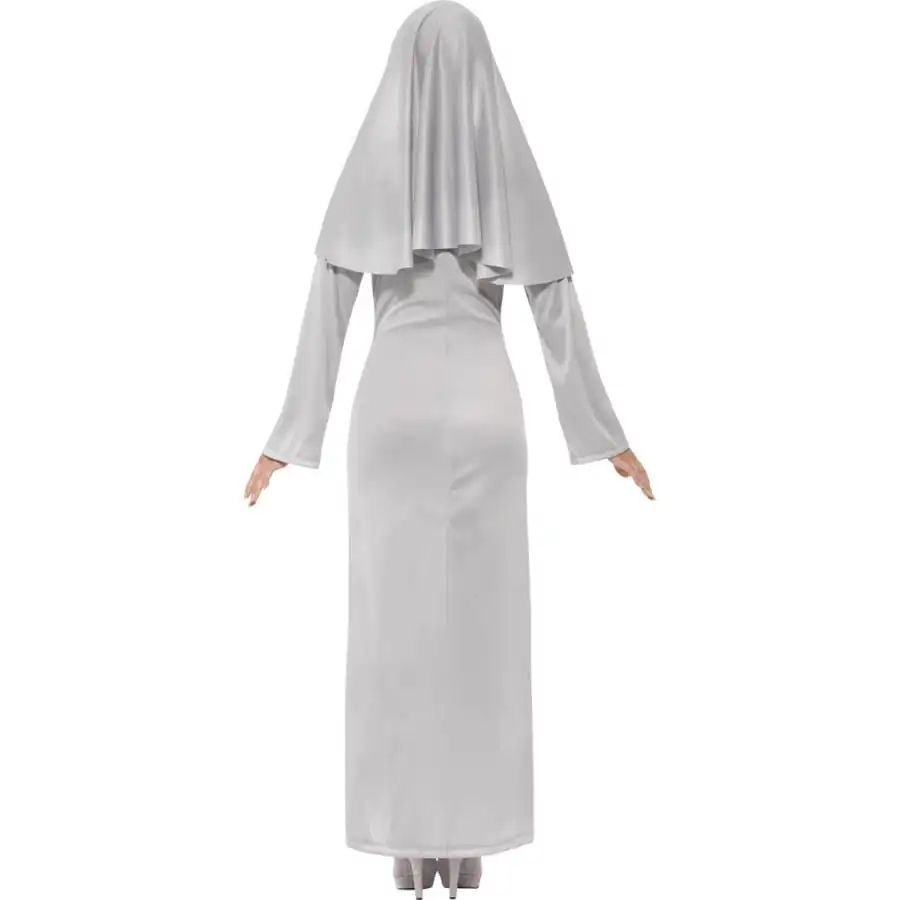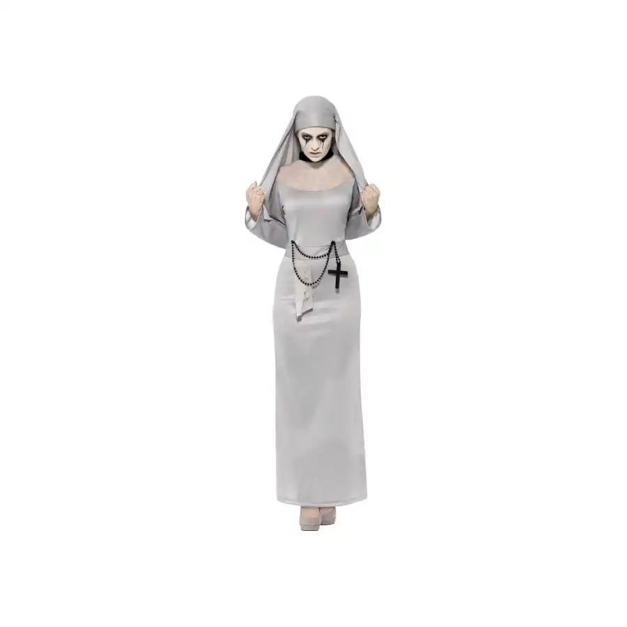 Lorsque l’on décide de mettre un déguisement pour Halloween, il faut mettre le paquet et chercher un déguisement original, de celui que personne n’oserait porter, comme ce costume de nonne gothique par exemple. Mesdames, osez porter ce déguisement constitué d’une robe de nonne de couleur grise assez cintrée avec comme ornement un chapelet de couleur noire au niveau de la ceinture, ainsi que d’une coiffe de nonne pour cacher vos cheveux avec la même couleur grise. Les tailles proposées sont L, M et S. Avec ce déguisement, portez un maquillage qui pâlira votre teint et assombrira votre regard. Croyez-nous, ce déguisement sera vraiment réussi, et surtout dans le thème de la fête d’Halloween.
