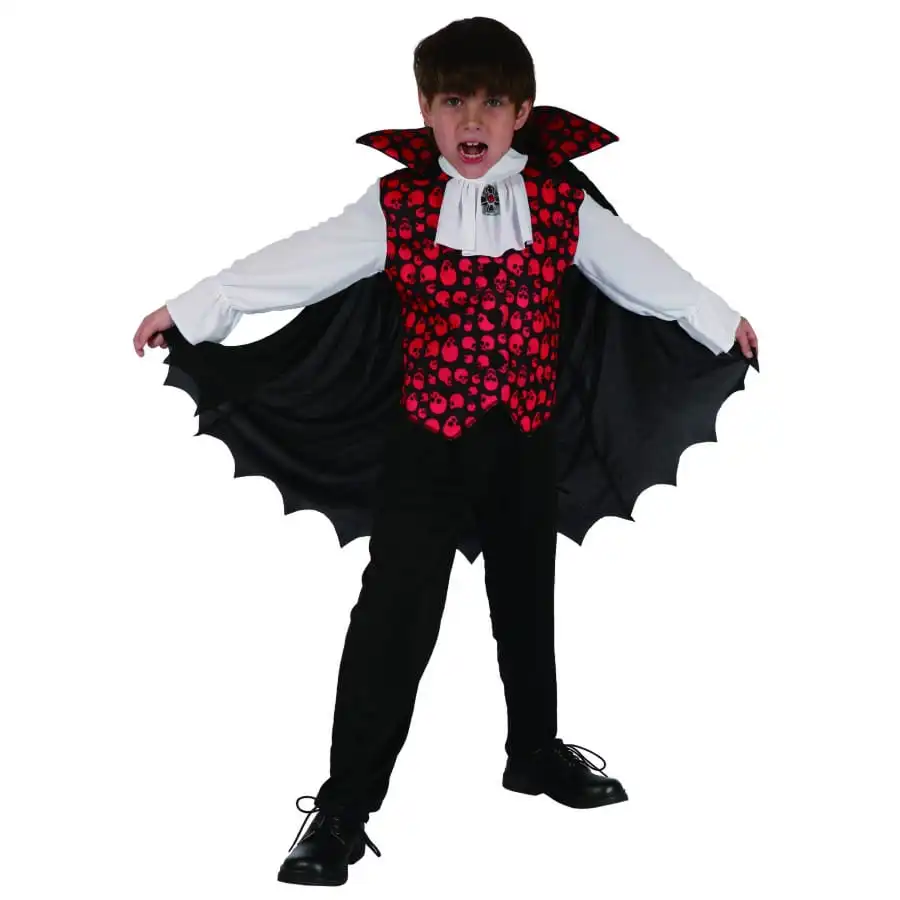 Pour que les petits garçons puissent recevoir leurs friandises facilement, nous vous proposons le costume de petit vampire imprimé têtes de mort.
