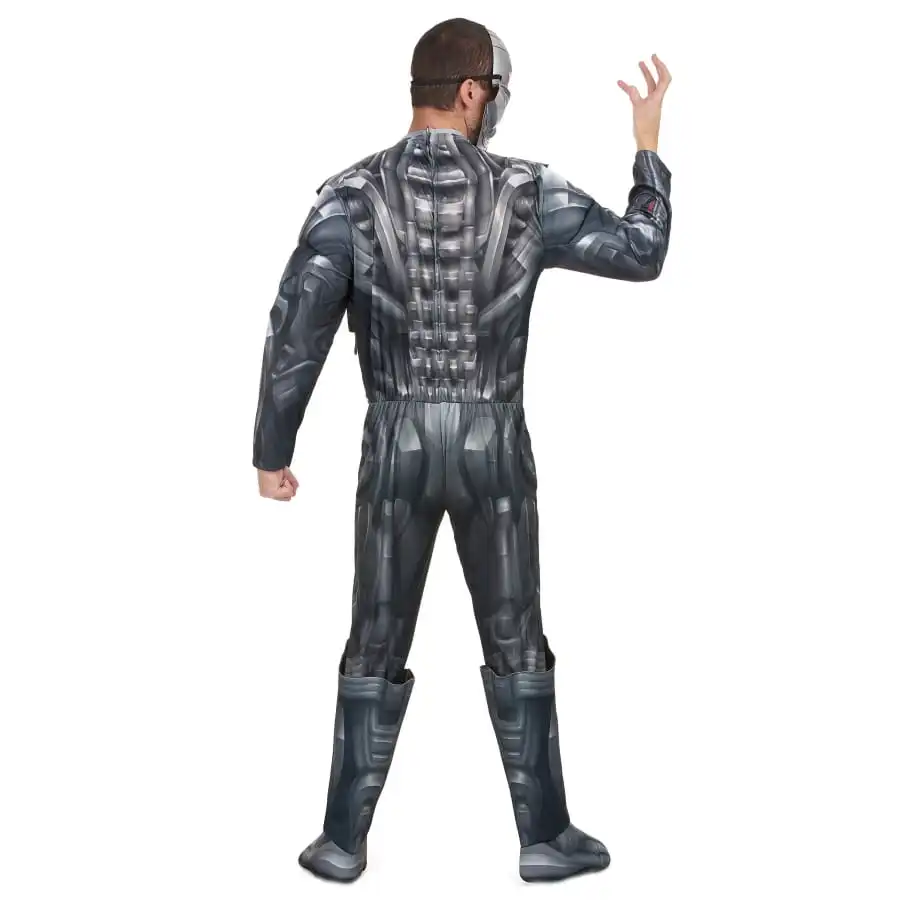 La combinaison grise est rembourrée au niveau du torse et des bras pour donner une impression de musclé.