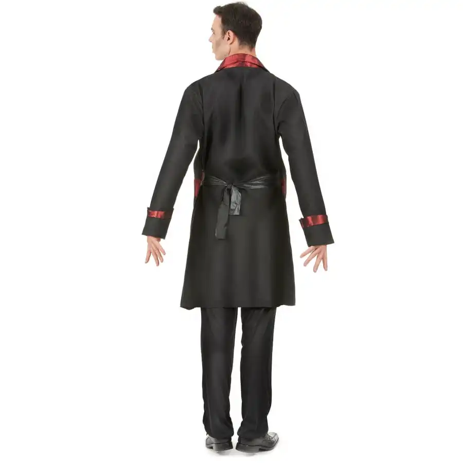 Messieurs, pour un look de vampire réussi, misez sur une tenue riche en détails. Pour ce faire, nous avons l’article qu’il vous faut. En effet, nous vous proposons le costume de vampire avec longue veste. Il reste disponible sur notre site. Cet ensemble comprend un pantalon de couleur noir, fabriqué dans un tissu satiné. Comptez également une longue veste noire, dont les bords sont de couleur bordeaux. A celle-ci se trouve rattaché un gilet noir, conçu dans un tissu assez fluide. Une ceinture se place à sa taille afin de lui donner encore plus de style. Un faux plastron blanc, décoré d’une fausse pierre précieuse rouge, vient compléter l’ensemble.