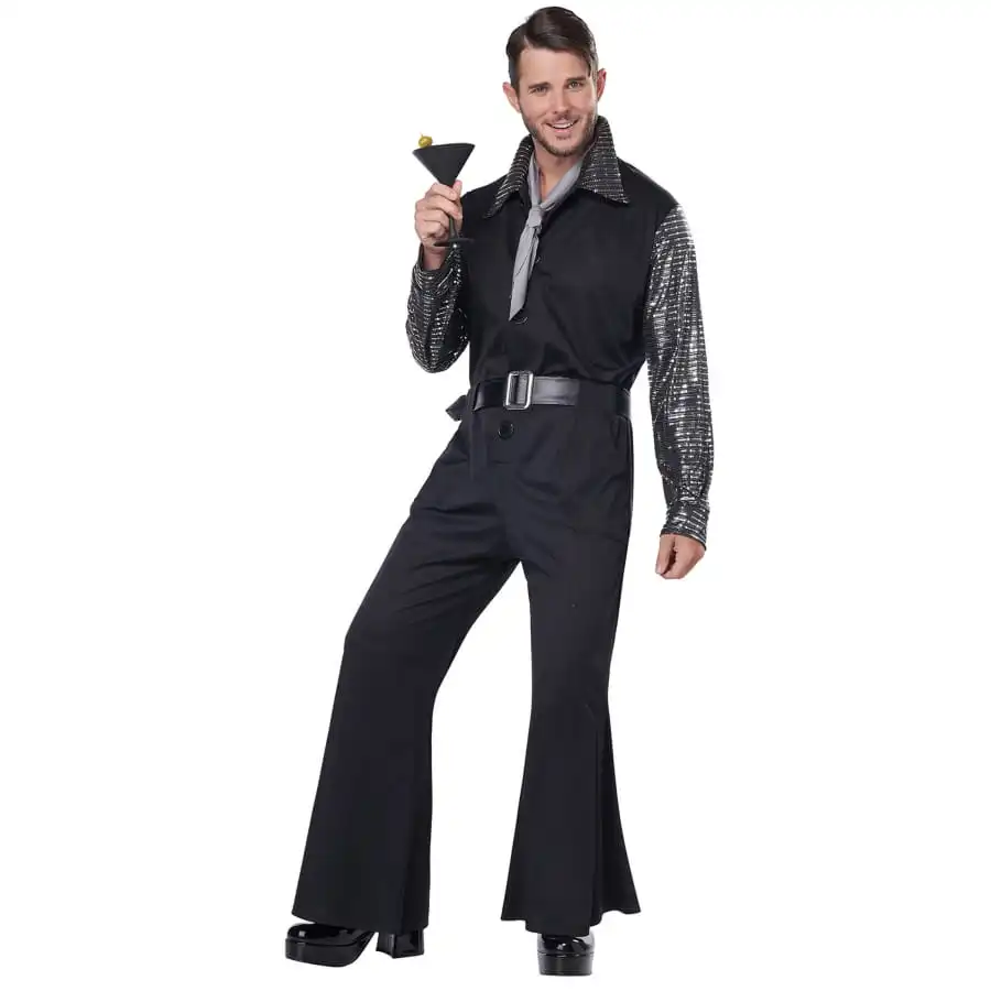 Illuminez une soirée dédiée aux seventies, avec le costume disco noir argenté pour homme.