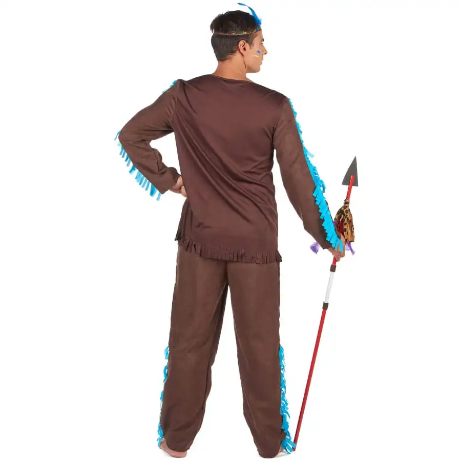 Le costume marron et bleu d’indien pour homme est un ensemble de 3 pièces.
