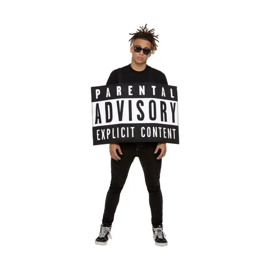 Drôle simple et pratique, ce Costume Parental Advisory pour adulte sera parfait pour un enterrement de vie de jeune célibataire.