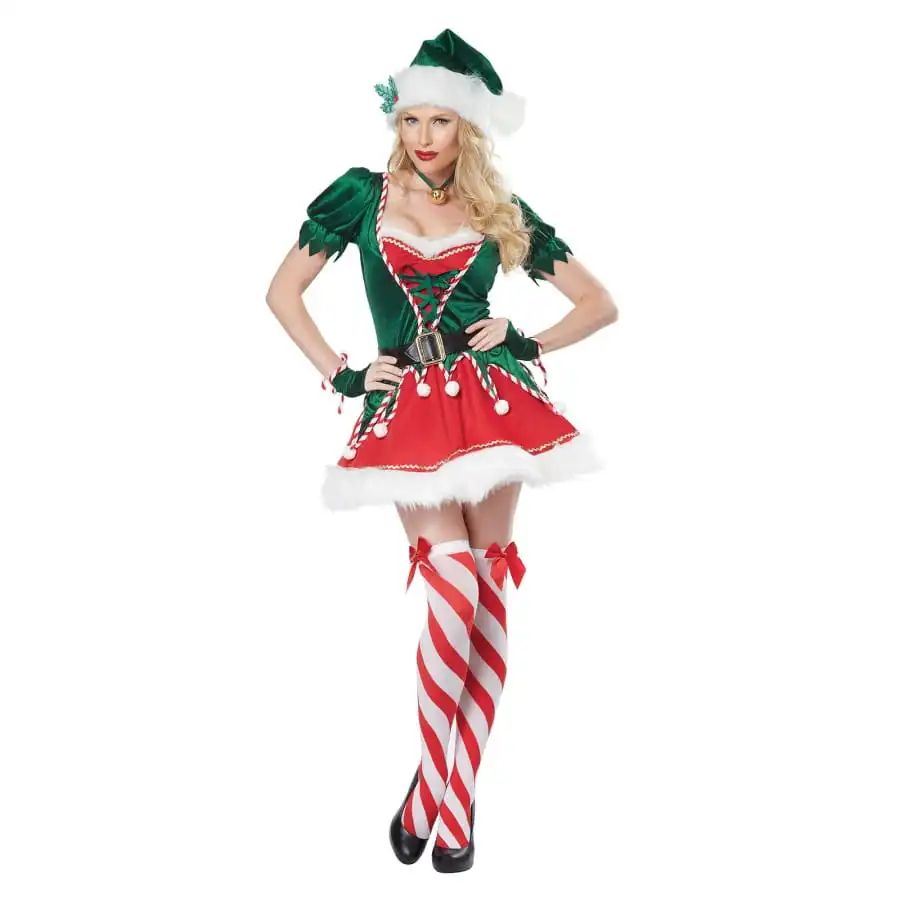 Vous serez la plus charmante des lutins de Noël, en revêtant ce costume sexy d’elfe du père Noël pour femme.