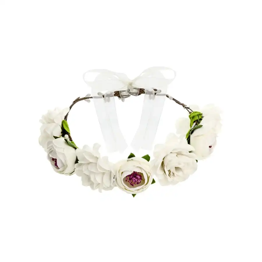 Incarnez une heureuse mariée à l’occasion d’une soirée à thème, en arborant la fabuleuse couronne blanche de fleurs.