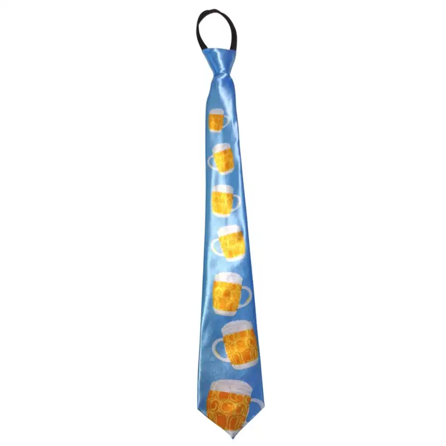 La cravate bleue décorée de verres de bière pour adulte est cousue avec un tissu effet satiné.