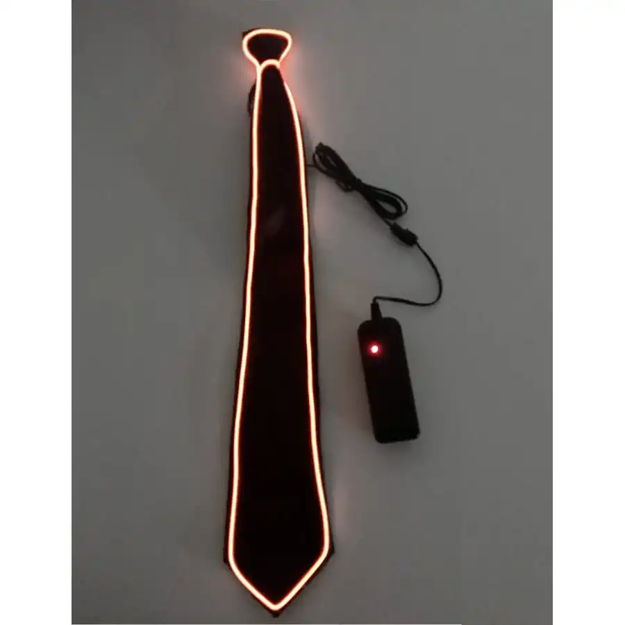 La cravate s’accompagne d’un boitier contenant 2 piles AA (non comprises dans le lot), et relié par câble au filament LED.