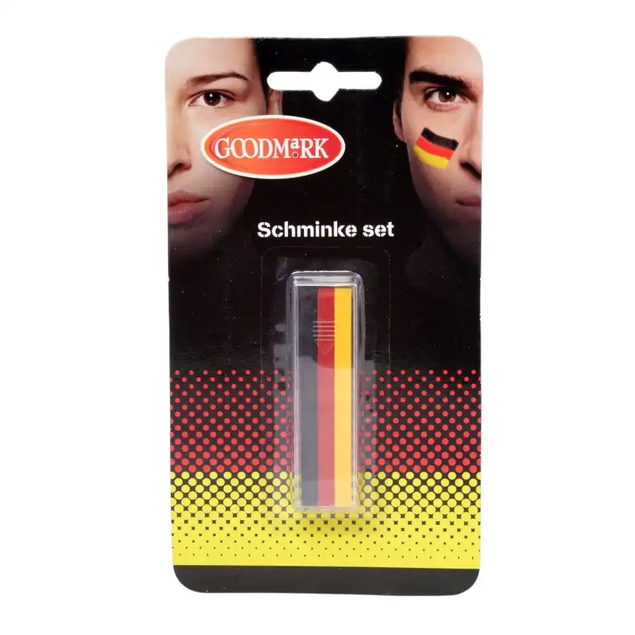 Les couleurs de l’Allemagne sont mises à votre disposition pour les futurs matchs et surtout pour la fête nationale. Munissez-vous donc de crayon de maquillage drapeau Allemand afin de dessiner directement sur votre peau le drapeau allemand noir, rouge et jaune. Il s’agit d’un stick composé de 3 couleurs avec 2,9 g de produit pour chaque couleur.