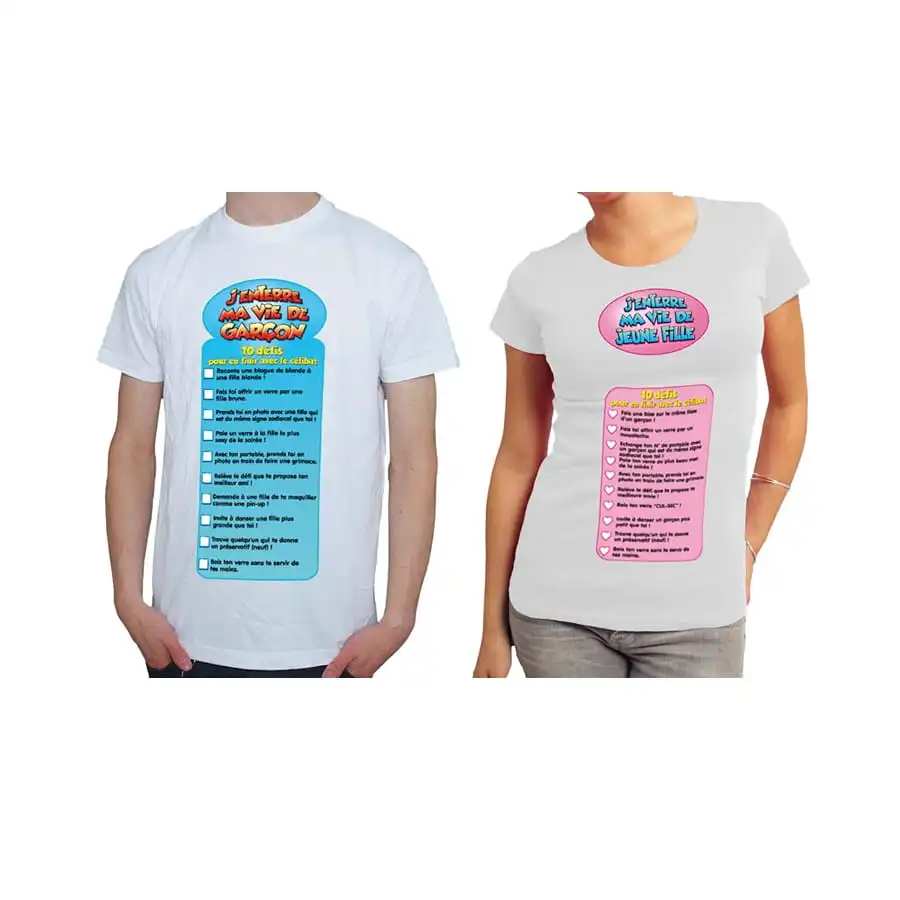 De couleur rose pour un enterrement de vie de jeune fille et bleue pour les garçons, une liste de 10 défis drôles et humoristiques y est imprimée.
