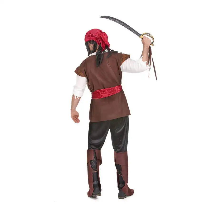 Les pirates sont toujours d’attaque pour de nouvelles aventures. Partez en quête de trésors cachés dans ce déguisement complet de pirate marron adulte. Il s’agit d’un ensemble pour homme, composé d’un t-shirt avec gilet intégré. Il s’agit d’un haut blanc à aspect chemise, avec les bords qui ont l’air déchiquetés. Un gilet de couleur marron y a été intégré pour former un tout. La tenue comprend également un pantacourt marron légèrement élastique au niveau de la taille. En guise d’accessoires, vous disposerez d’un bandana rouge et d’une ceinture rouge à nouer autour de la taille pour ajuster votre costume. Les surbottes de couleur assorties au gilet contribueront à parfaire le déguisement.