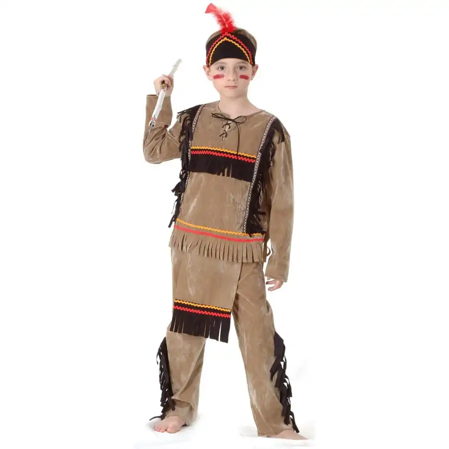 Le Far West est peuplé d’indiens, optez pour déguisement d’indien marron à franges pour enfant pour que le vôtre en devienne un. Ce joli costume est constitué d’une tunique et d’un pantalon en feutrine, tous deux marron clair, et d’un bandeau. Le bandeau est large, de couleur noire, avec des bandes jaunes et rouges. Le haut est orné de franges noires, sur le côté du buste et le torse, ainsi que de bandes rouges et jaunes. Le pantalon dispose d’un tablier avec franges sur le devant, et des franges également au niveau des mollets. Retrouvez des armes d’indiens sur le site et maquillez votre enfant grâce à nos produits cosmétiques.