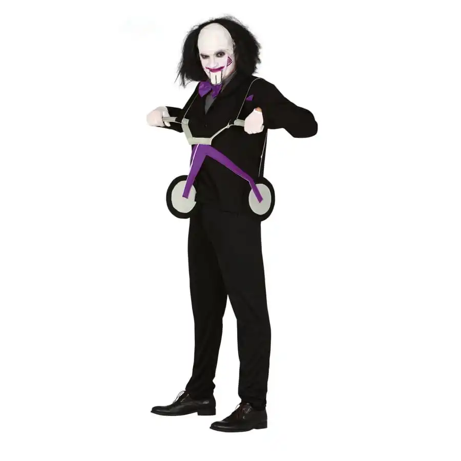 Entrez dans le monde d’horreur de Saw en incarnant le personnage le plus terrifiant dans ce Déguisement de jigsaw en tricycle, adulte.